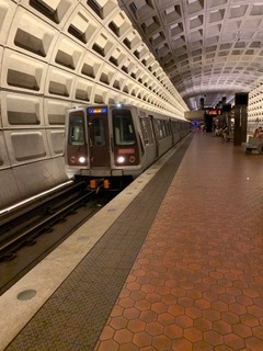 I took the escalators down to the subway at Foggy Bottom on a very hot day. It was early afternoon, not rush hour, and there was just a moderate number of people in the station.